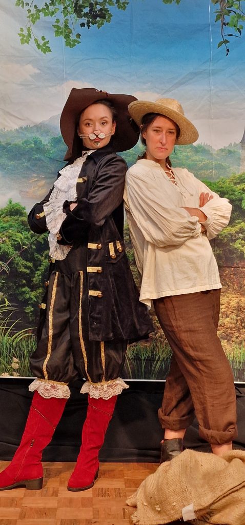 Vier wandlungsfähige Schauspielerinnen und Schauspieler präsentieren in prächtigen Kostümen das beliebte Märchen. Zur Seite stehen ihnen Figuren, die die Rebhühner, die Maus, den Löwen und die Gesellen verkörpern. Der zunächst unglückliche Hans gewinnt durch den Einfluss des Katers immer mehr an Selbstsicherheit und wagt sich an Dinge heran, die ihm sonst unmöglich schienen.